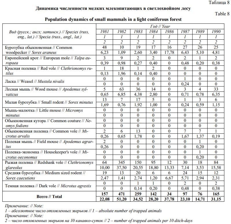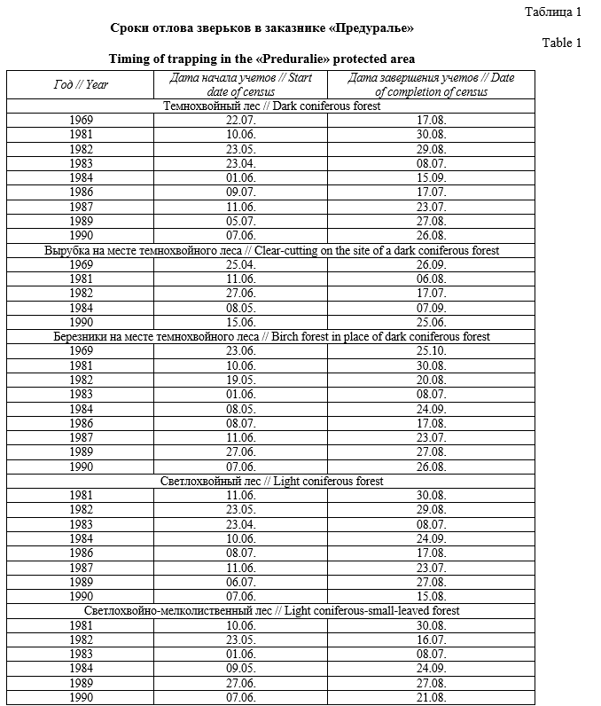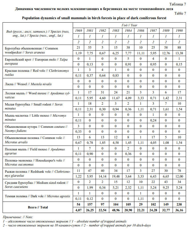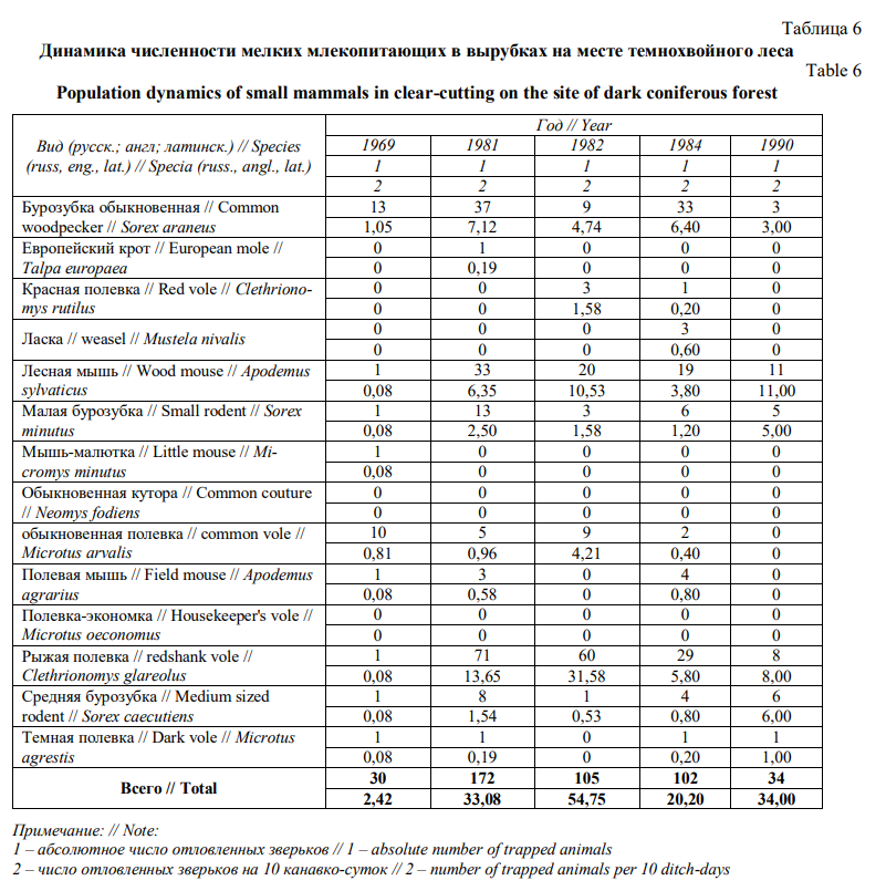 Сукцессионная динамика мелких млекопитающих в ряду хвойных биогеоценозов заказника «Предуралье»