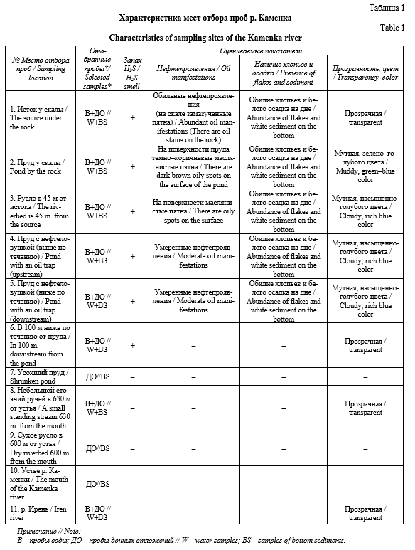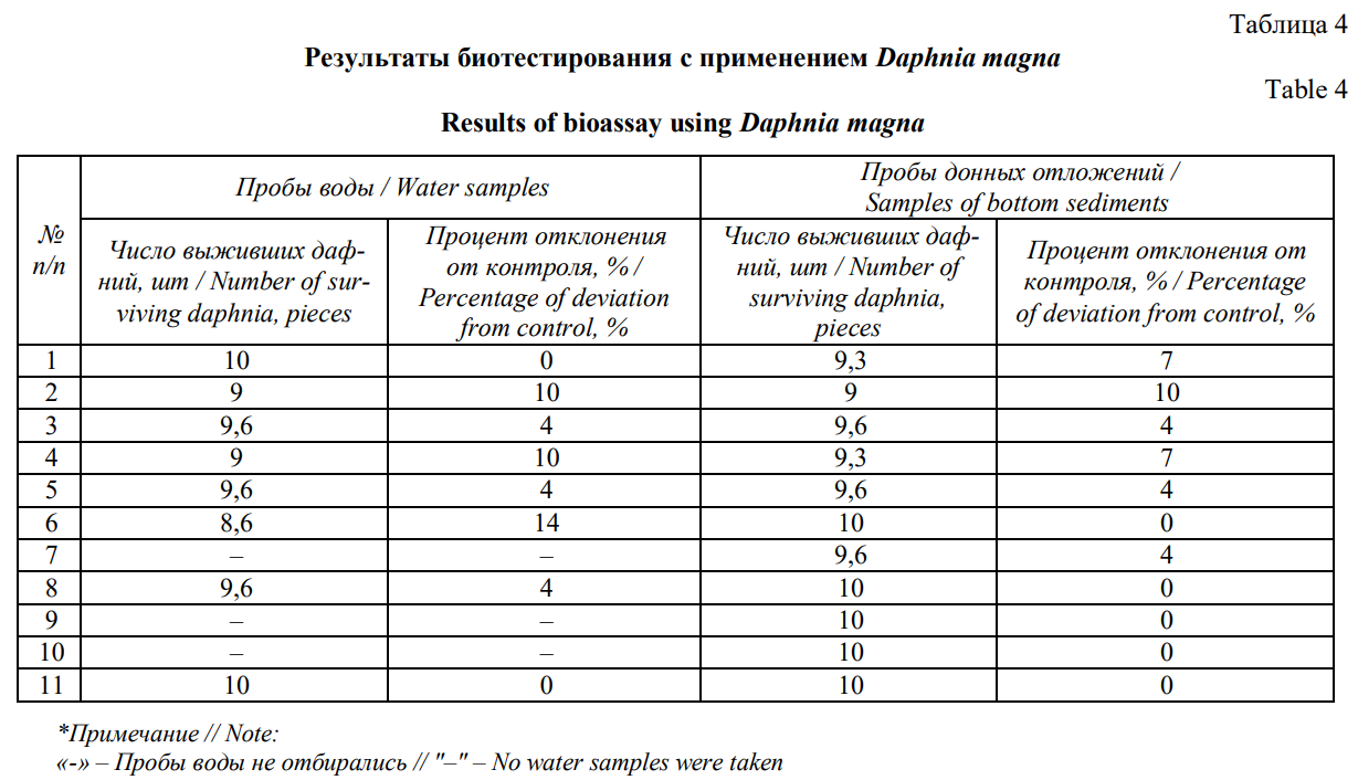 Оценка качества вод и донных отложений р. Каменка методом биотестирования
