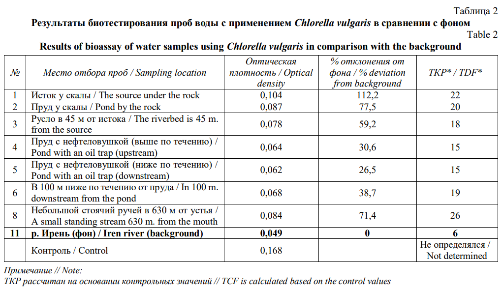 техногенное воздействие, трансформация экосистем, тест-объект, Daphnia magna, Chlorella vulgaris, токсичная кратность разбавления (ТКР), оптическая плотность, река Ирень, Кокуйское нефтяное месторождение, карстАннотация