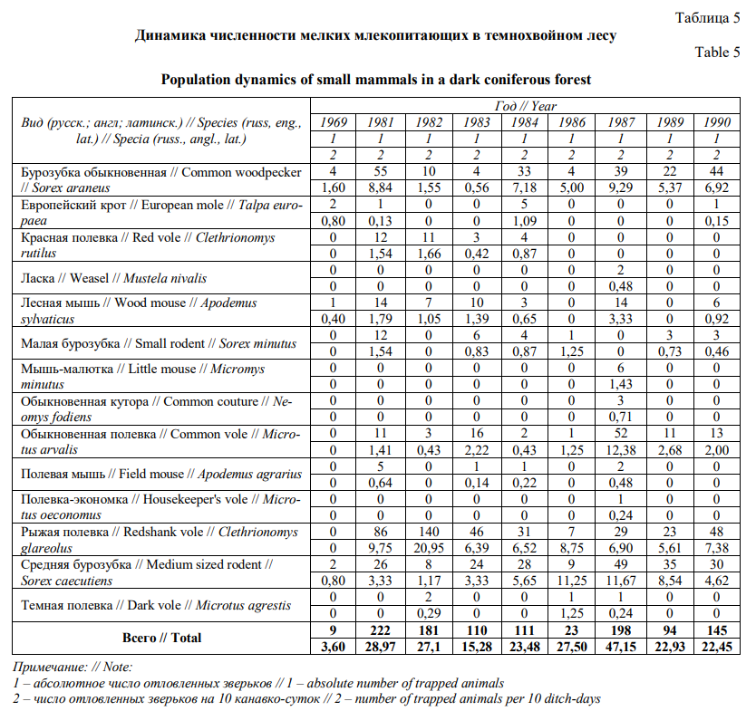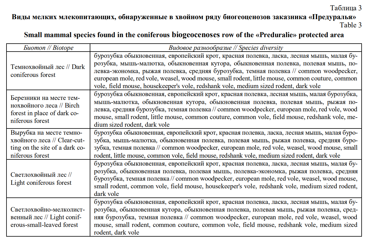Сукцессионная динамика мелких млекопитающих в ряду хвойных биогеоценозов заказника «Предуралье»